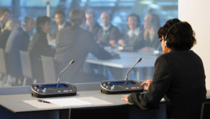 Interpretación Simultánea a distancia En las actuales circunstancias en que se han cancelado las reuniones presenciales, no es posible posponer indefinidamente los eventos, tales como capacitaciones, congresos, conferencias, auditorías, reuniones de consejo, entre otras. Tenemos la capacidad de transmitir todo tipo de eventos a un número ilimitado de participantes con interpretación simultánea a distancia, a uno o más idiomas. Nuestro personal técnico es experto en el manejo de diversas plataformas de videoconferencias a las que se puede integrar la interpretación simultánea, lo que nos permite adaptarnos a las necesidades de cada evento. Para ello empleamos plataformas de videoconferencias propias o convencionales (Zoom, Webex, Microsoft Teams, Skype, entre otras), así como las plataformas de interpretación simultánea a distancia más robustas y probadas (VoiceBoxer, Kudo, Interactio, Interprefy, entre otras). Nuestros intérpretes están capacitados para utilizar las plataformas más robustas de interpretación simultánea a distancia, que reproducen su ambiente de trabajo en los eventos presenciales.